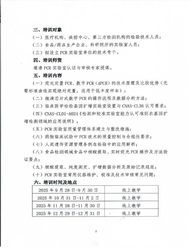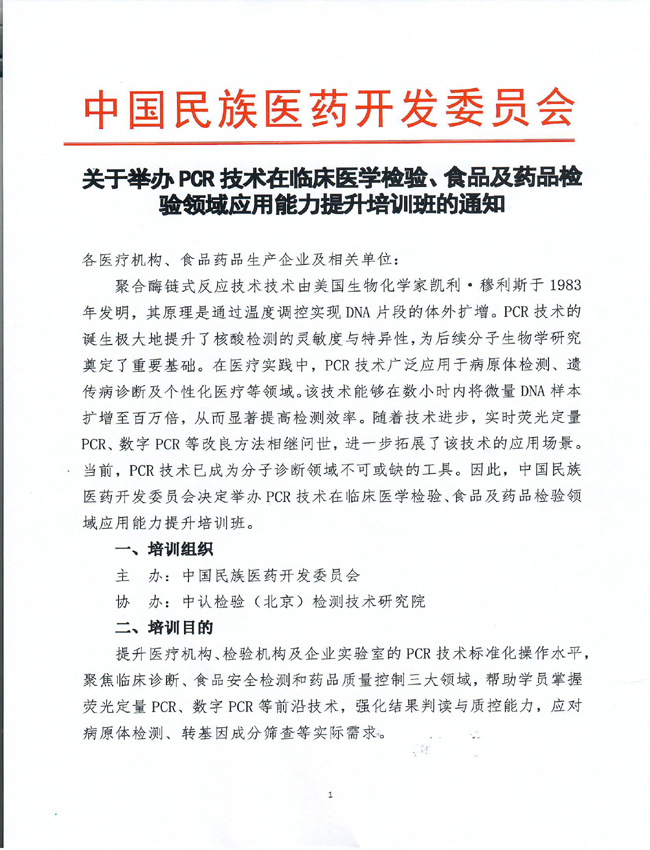 关于举办PCR新技术在临床医学检验、食品及药品检验领域应用能力提升培训班的通知