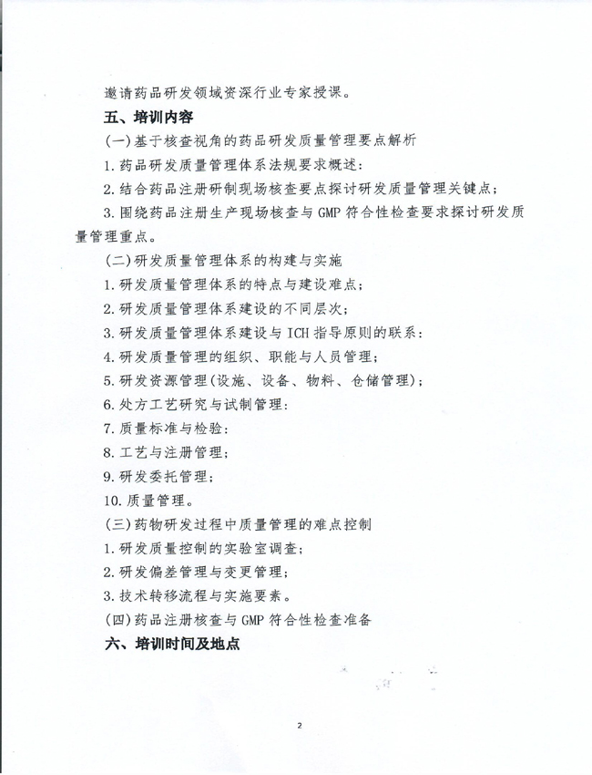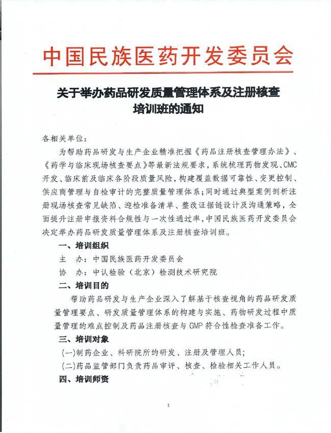关于举办药品研发质量管理体系及注册核查培训班的通知