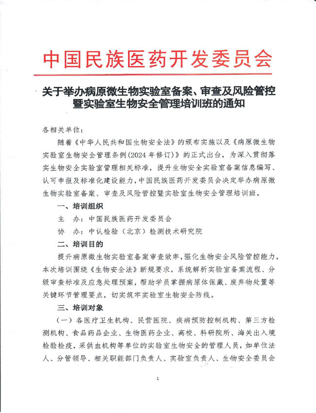 关于举办病原微生物实验室备案、审查及风险管控暨实验室生物安全管理培训班的通知